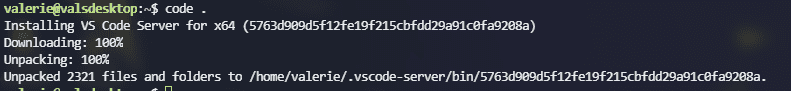 When VS Code opens, there will be an indication in the lower left corner that the editor is connected to the code server.